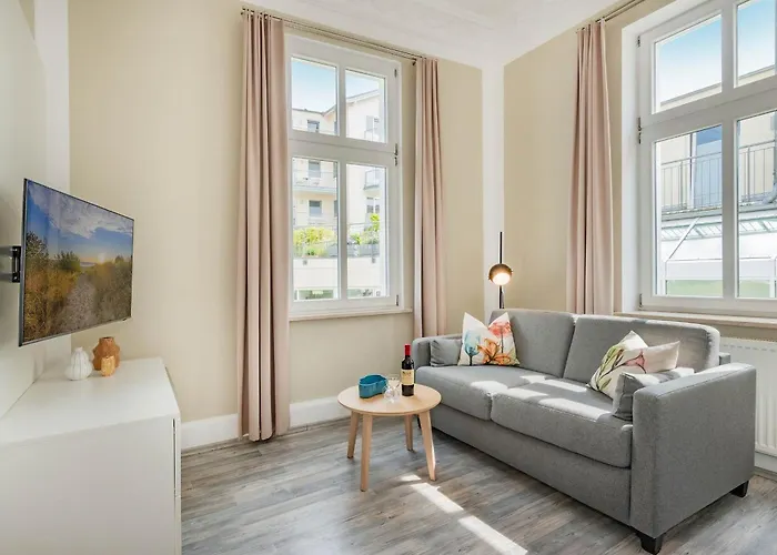 Acomodação fica a 5 minutos a pé da Walentowski Galerien. Esta propriedade à beira-mar está a menos de 3 km do centro da cidade e Haus der Erholung fica a uma curta distância. Os hóspedes podem desfrutar uma cozinha Deli no Lara Mammania localizado a 300 metros de distância.